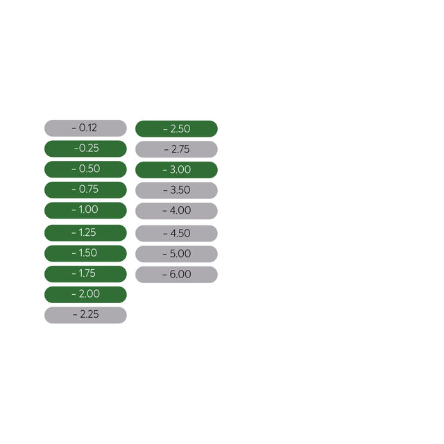 -0,25 dioptries à -2,00 dioptries par incréments de 0,25 dioptrie